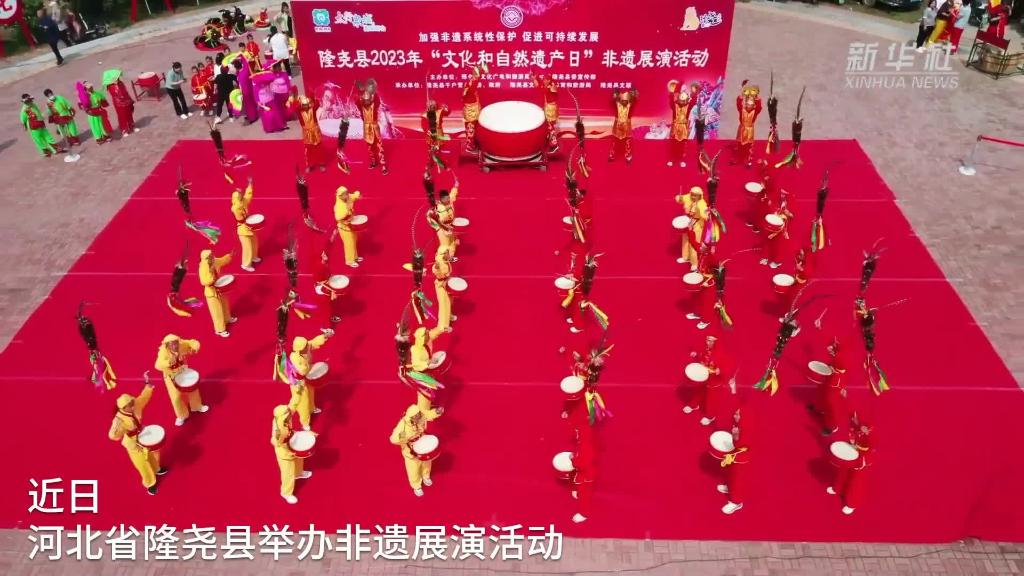 近日,河北省隆尧县举办非遗展演活动,迎接2023年“文化和自然遗产日”的到来。在铿锵有力的锣鼓声中,招子鼓、秧歌戏、南鱼龙灯等10余个国家和省级非遗项目轮番上演,精彩纷呈。