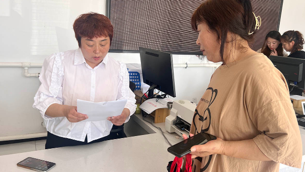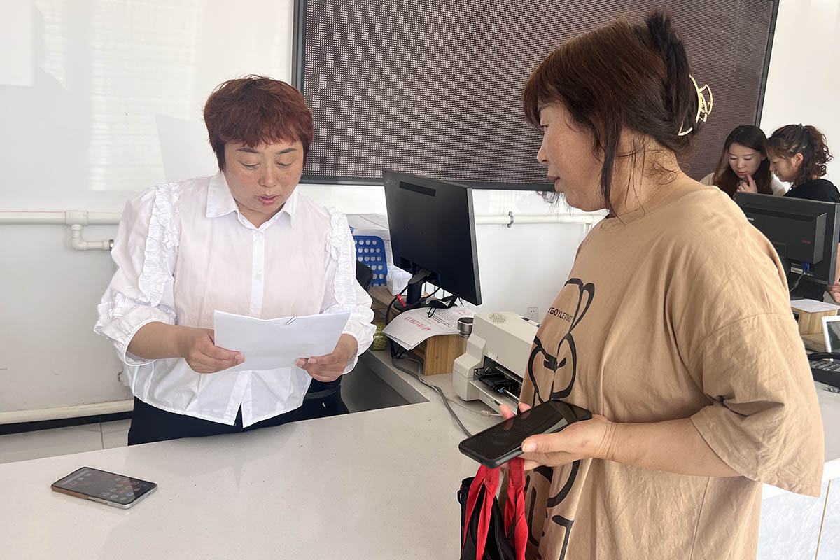 在双滦区偏桥子镇行政综合服务中心,宣讲人员为村民讲解养老保险惠民政策。刘寅摄