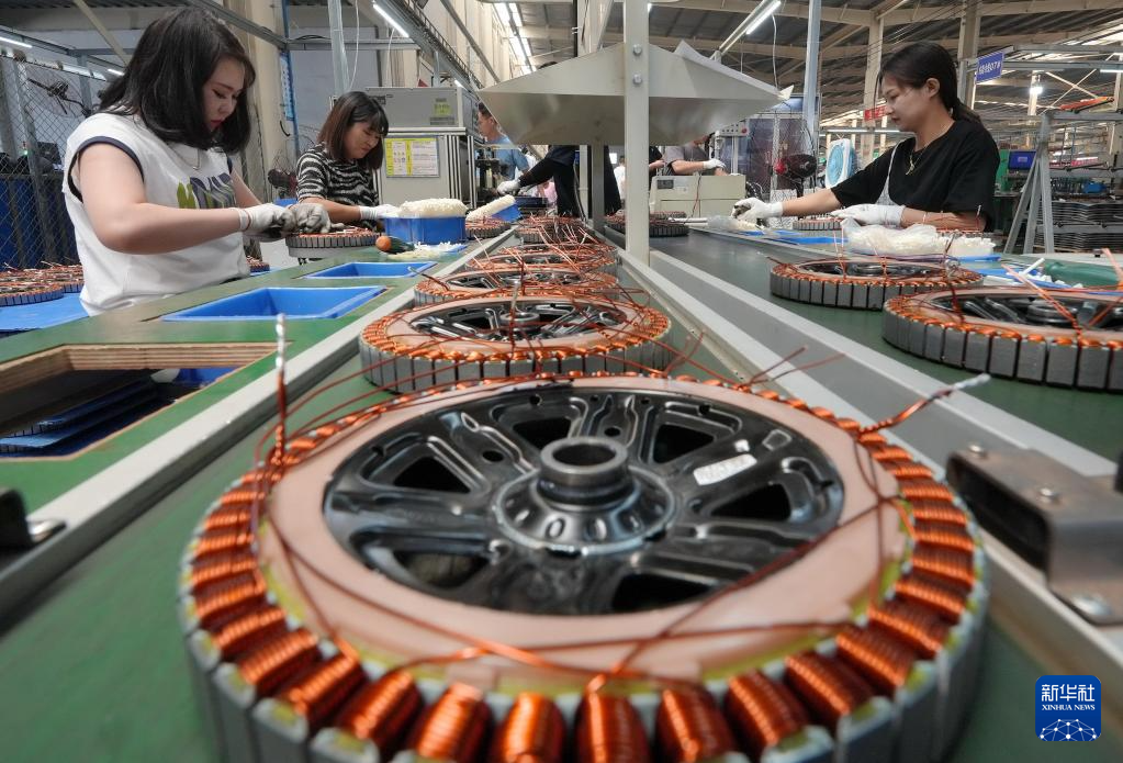 6月25日,工人在唐山市芦台经济开发区一家电动自行车电机企业的生产车间工作。