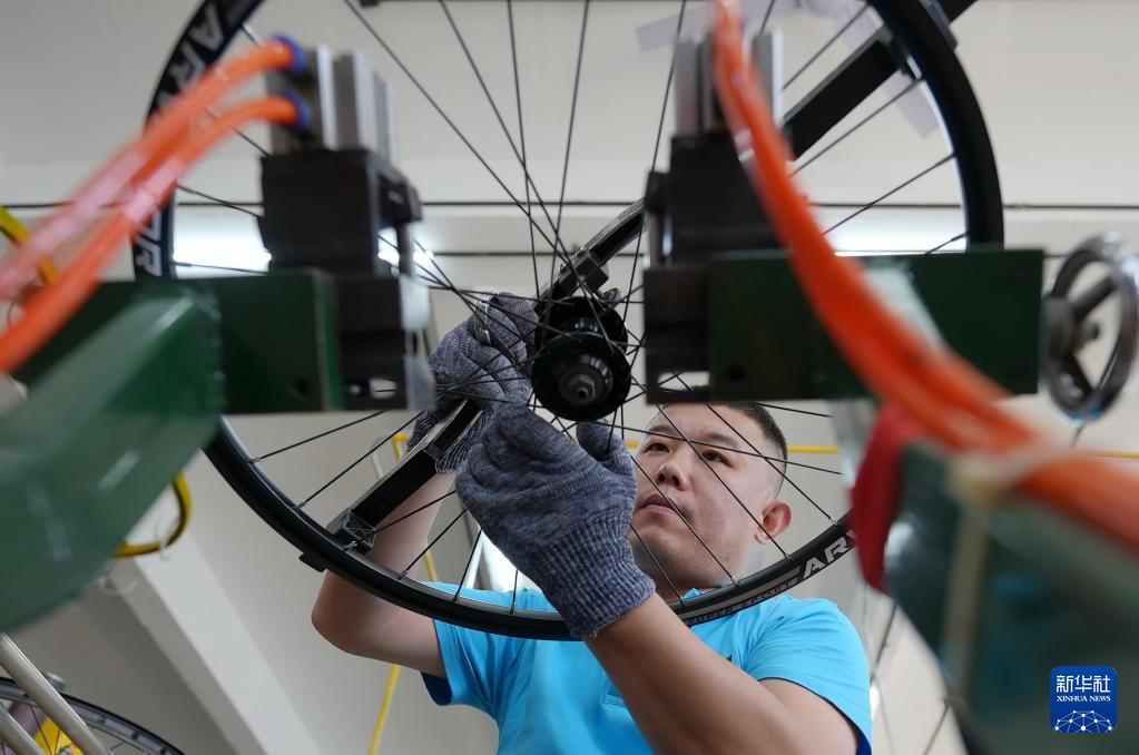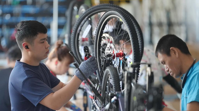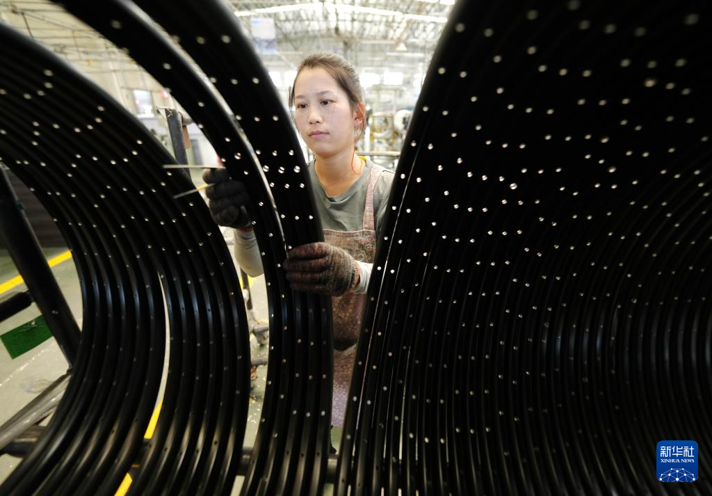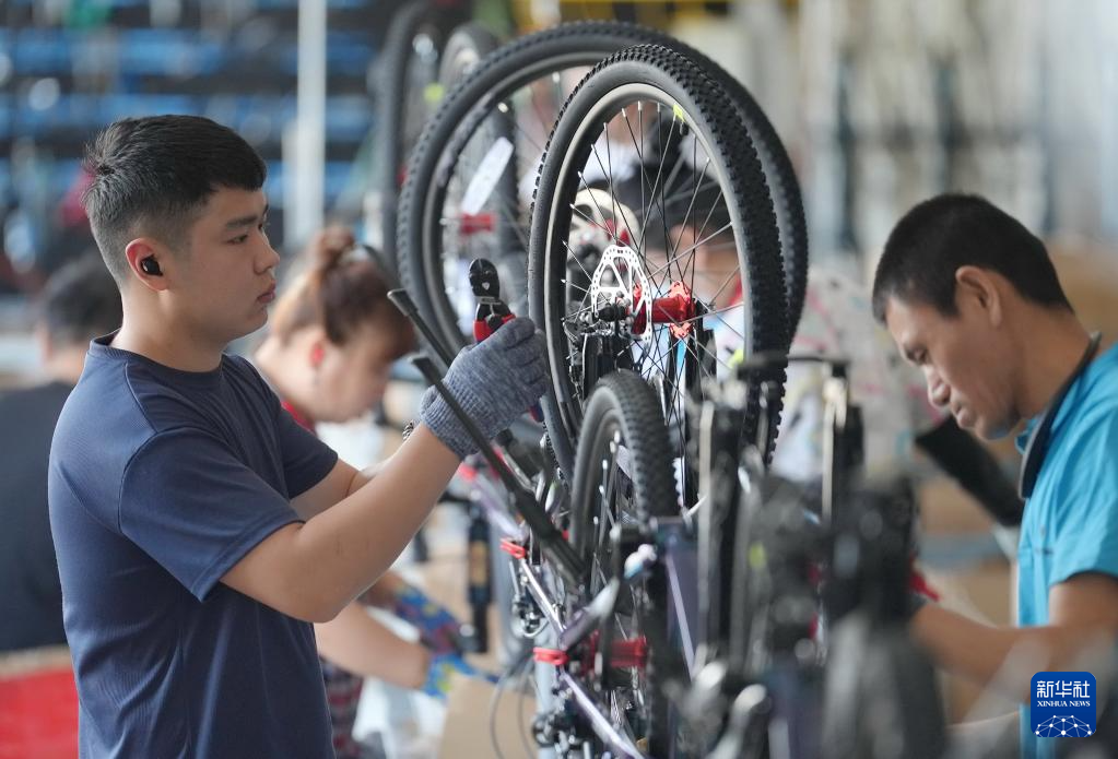 6月25日,工人在唐山市芦台经济开发区一家自行车企业的生产车间工作。