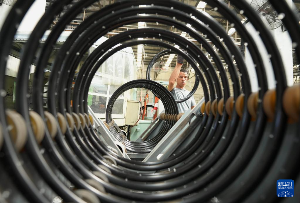 6月25日,工人在唐山市芦台经济开发区一家自行车配件企业的生产车间工作。