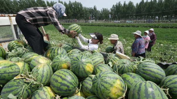 眼下,河北省滦南县青坨营镇的5000多亩西瓜进入成熟期,农民们开始采摘、外销。近年来,河北省滦南县积极调整农业种植结构,探索农业产业化发展新模式,引导农民立足资源优势,以“一村一品”模式加快传统农业向特色农业、高效农业转变,助推农业增效、农民增收。