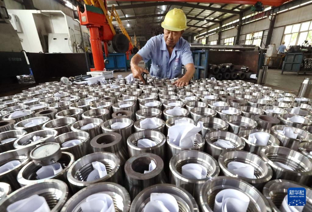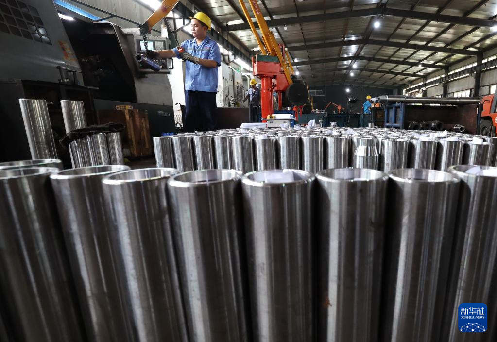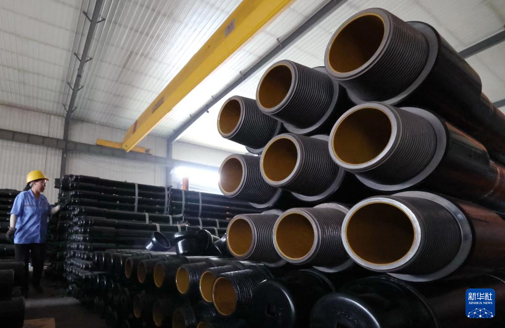 7月3日,工人在河北省晋州市营里镇一家石油钻具企业生产车间工作。