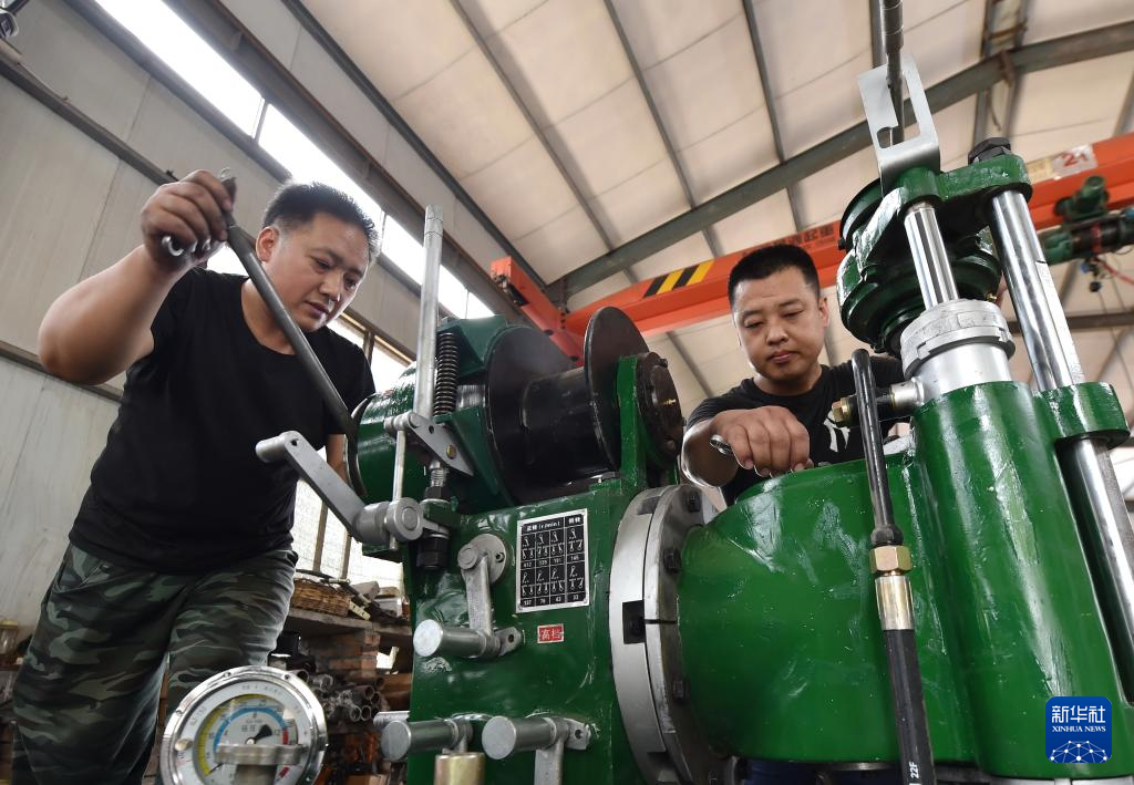 7月3日,河北省晋州市营里镇一家地质装备企业的工人在生产车间工作。