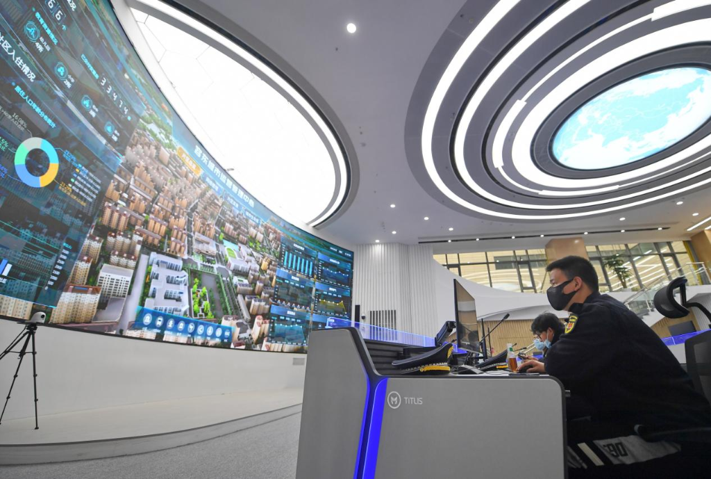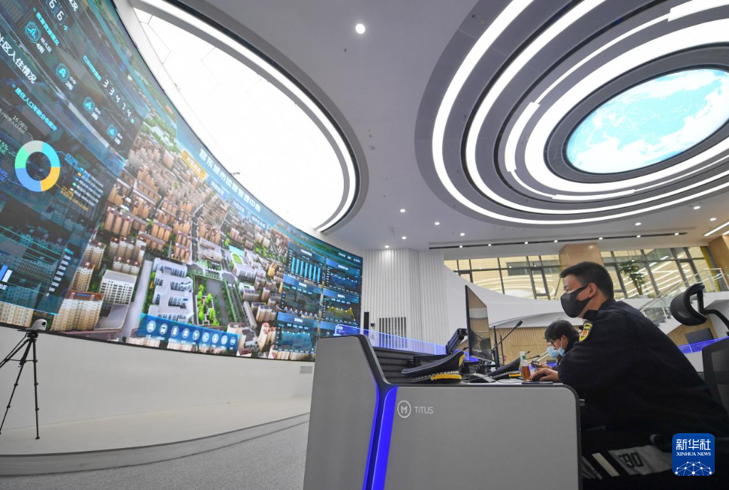 工作人员在雄安新区容东城市运营管理中心监管平台工作。新华社记者朱旭东 摄