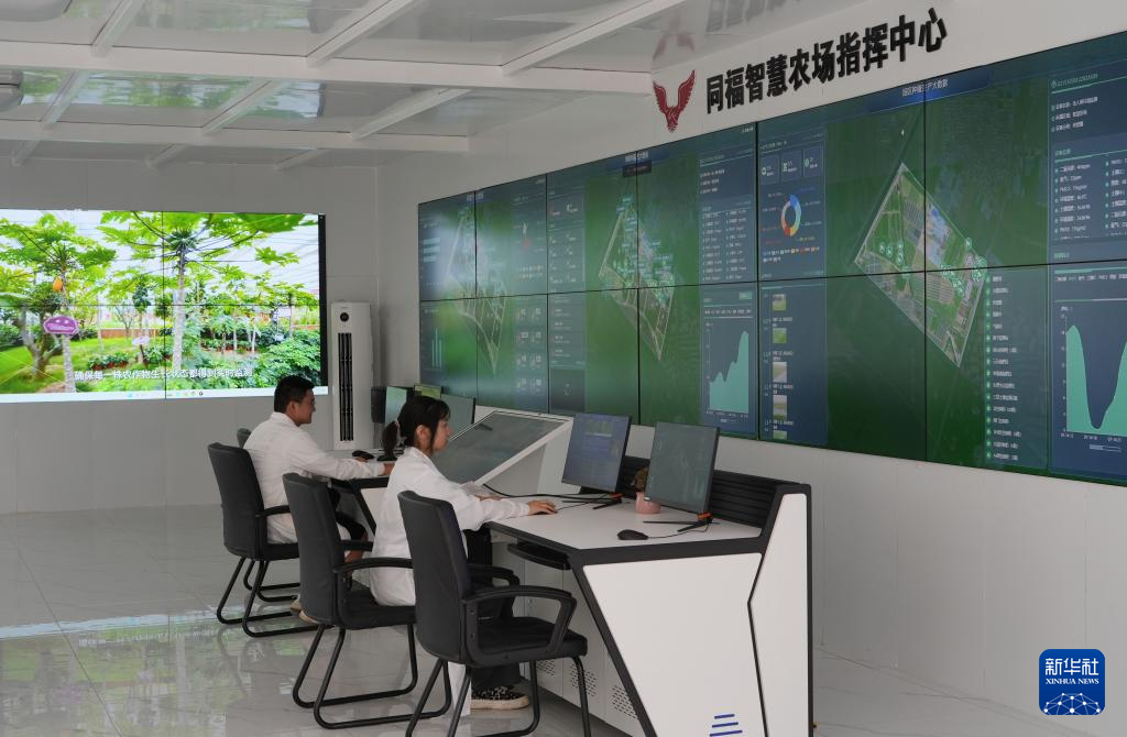 7月18日,在正定县塔元庄同福智慧农场,员工在指挥中心平台查看农场运行情况。