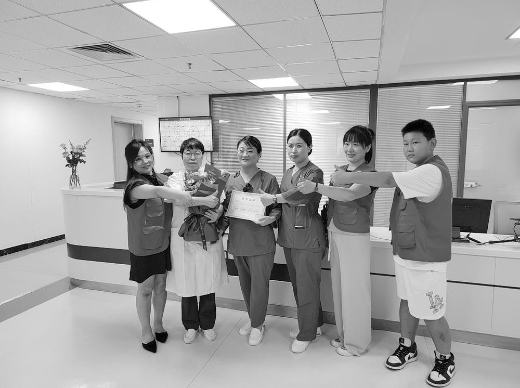 ■大家为收到鲜花和证书的康晓岚(左三)点赞。