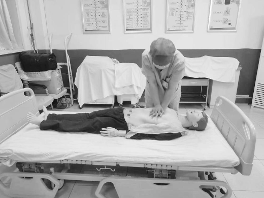 ■冯肖练习心肺复苏。(资料图片)