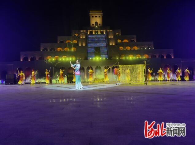 开幕式现场,播放了大型浪漫主义环球情景秀《唱响丝路》,引人入胜的贯穿中西丝绸之路全景呈现。以金字塔塔身作为光影载体,穿越时空,带领大家观看了一场穿越古今的大秀,领略丝路的壮丽与传奇。