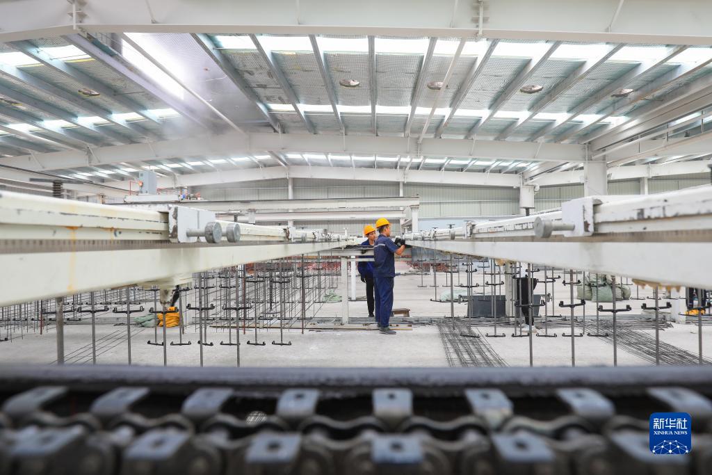 工人在位于唐山市滦南县的唐山华纤科技有限公司生产车间内工作(2022年6月27日摄)。新华社发(张永新 摄)