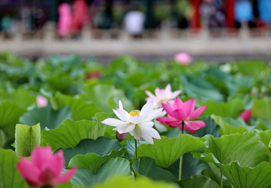 秦皇岛市抚宁区中华荷园景区内荷花盛开。