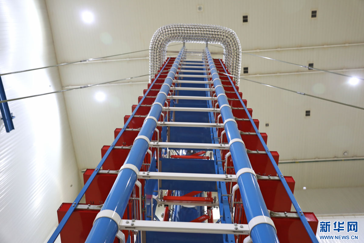 这是天威保变(秦皇岛)变压器有限公司用于测试变压器抗压能力的冲击电压发生器。新华网 魏会博摄