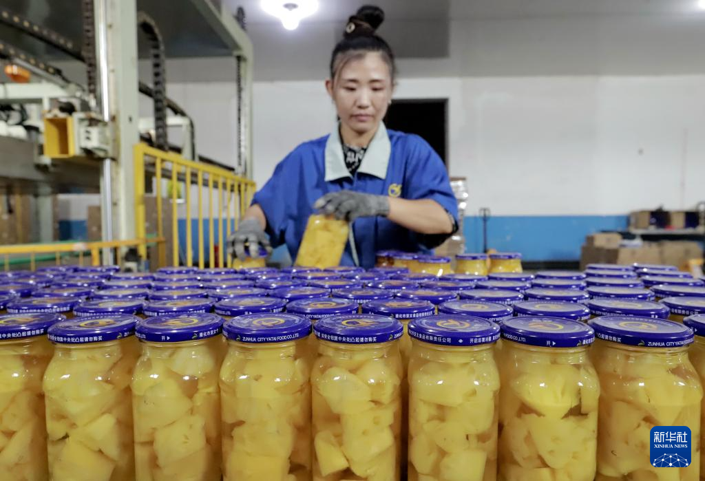 9月6日,工人在河北省遵化市一家水果罐头加工企业的生产车间工作。