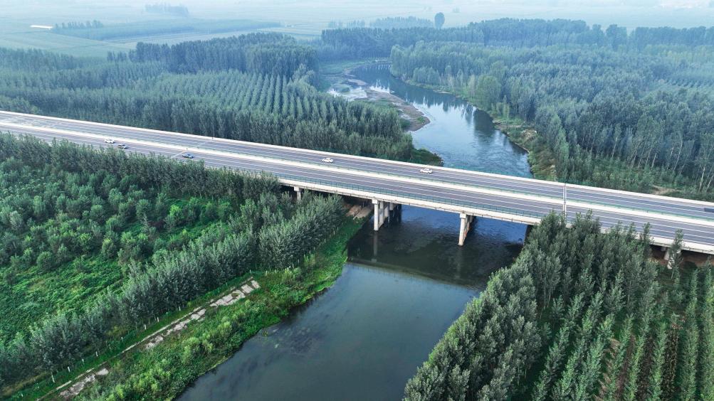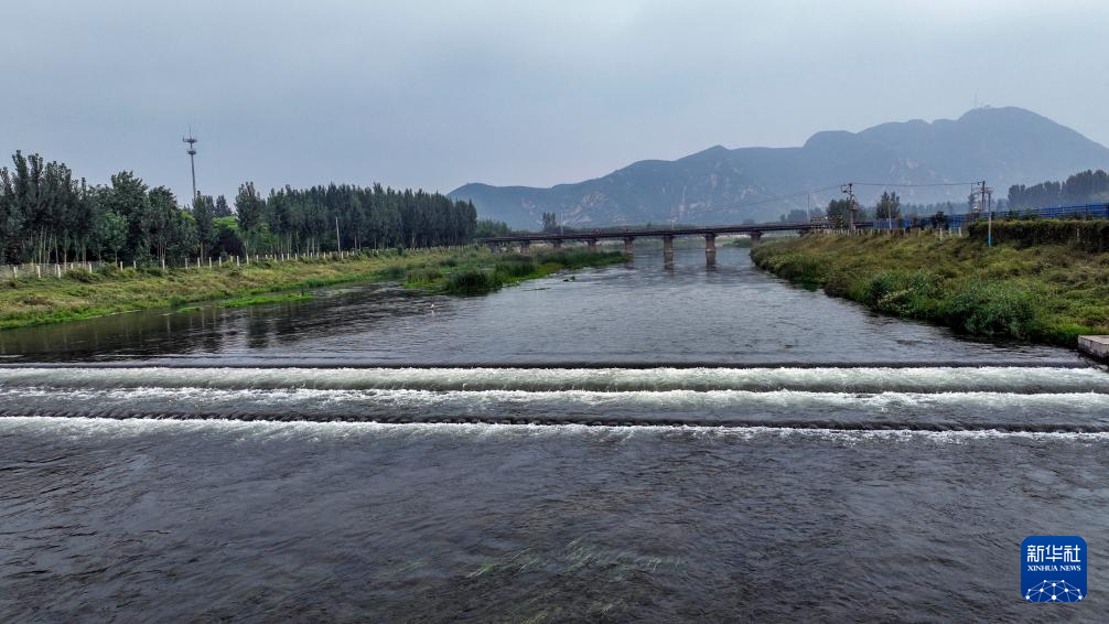 9月11日在河北省遵化市拍摄的引滦入津工程重要输水河道黎河(无人机照片)。