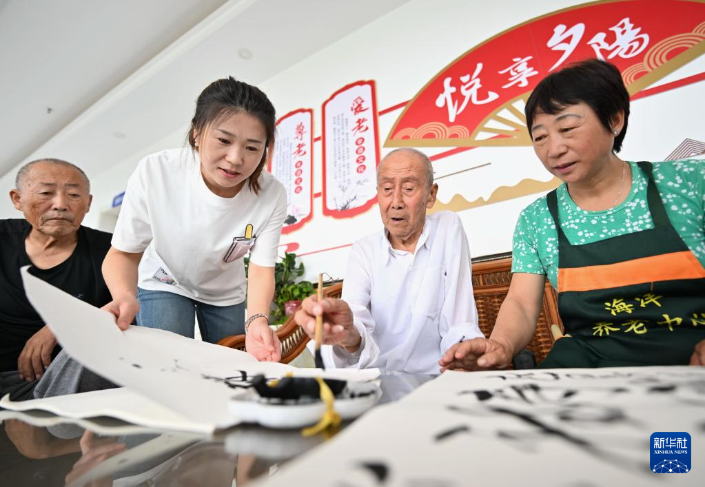 9月11日,在河北省滦州市王店子镇海洋养老中心,老人在练书法。
