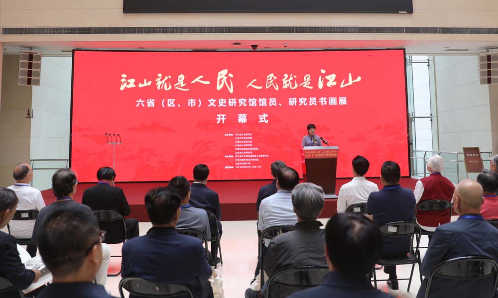 新华网石家庄9月26日电(袁丽娜)由河北省文史研究馆联合北京市、天津市、山西省、内蒙古自治区和山东省文史研究馆共同举办的“江山就是人民 人民就是江山”六省(区、市)文史研究馆馆员、研究员书画展26日在石家庄市美术馆开幕。