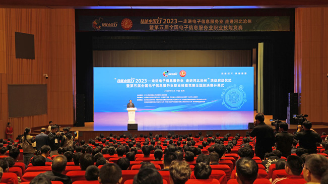 新华网石家庄10月26日电(魏会博)10月25日,技能中国行2023——走进电子信息服务业、走进河北沧州暨第五届全国电子信息服务业职业技能竞赛在河北省沧州市拉开帷幕。此次活动包括论坛、展览、报告会和竞赛等内容,其中,来自全国27个省(区、市)的447名选手参加本届技能竞赛,同场竞技、展现风采。