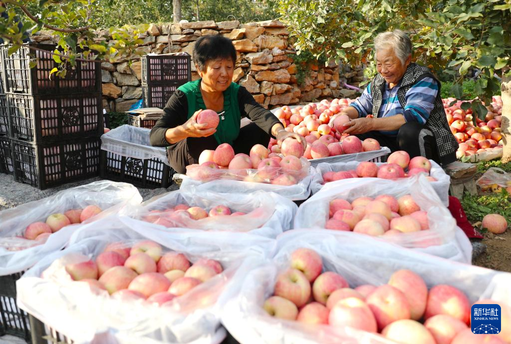 眼下,在地处太行山东麓的河北省顺平县,6.6万亩苹果迎来成熟期,果农在果园忙着采摘、分拣、装运,供应市场。