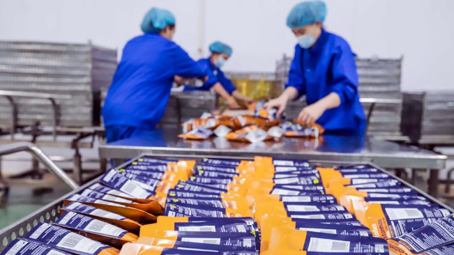 10月29日,工人在遵化市一家食品加工企业车间包装出口栗仁。