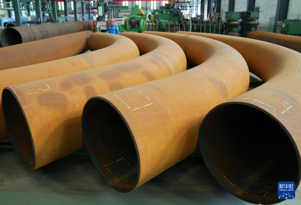 11月5日,工人在秦皇岛经济技术开发区中石油宝世顺(秦皇岛)钢管有限公司弯管生产车间工作。