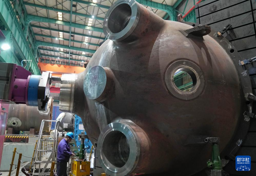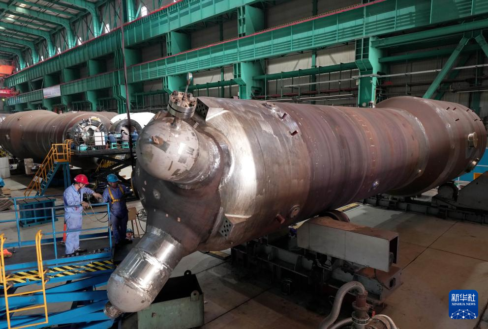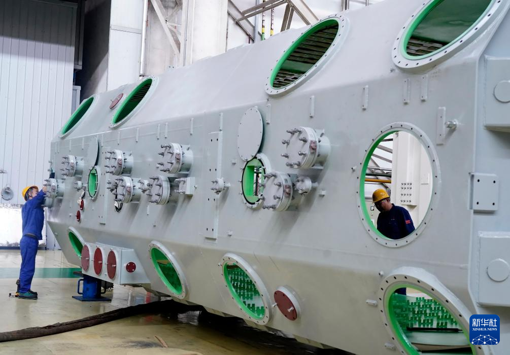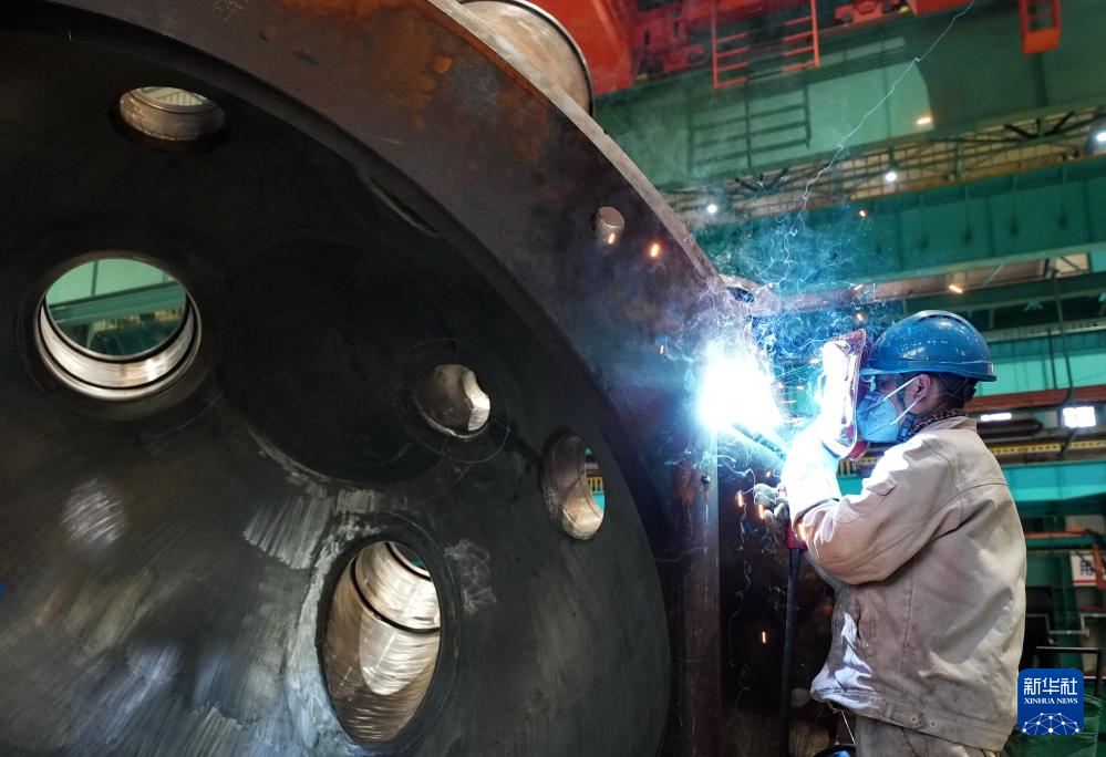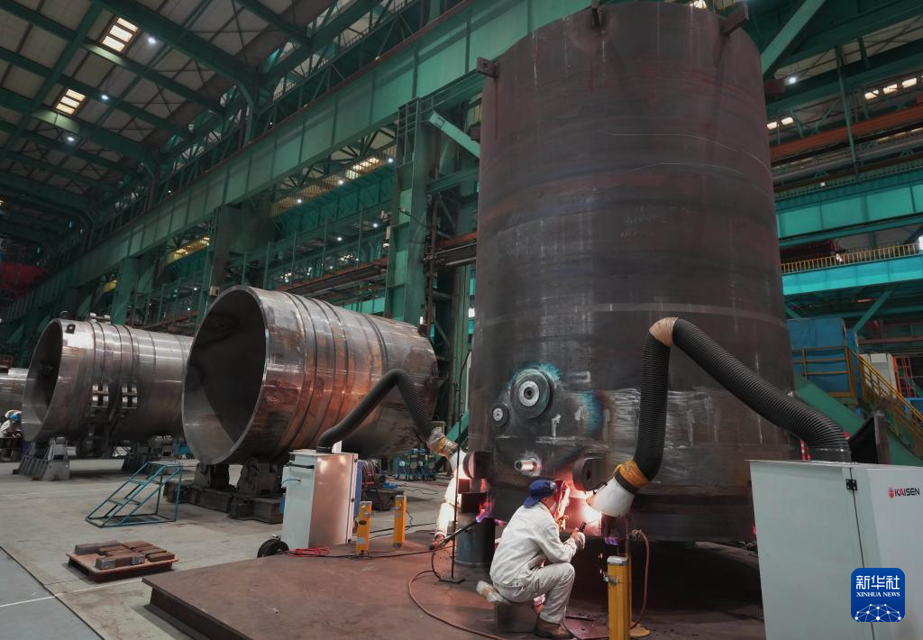 11月5日,工人在秦皇岛经济技术开发区哈电集团(秦皇岛)重型装备有限公司的生产车间工作。