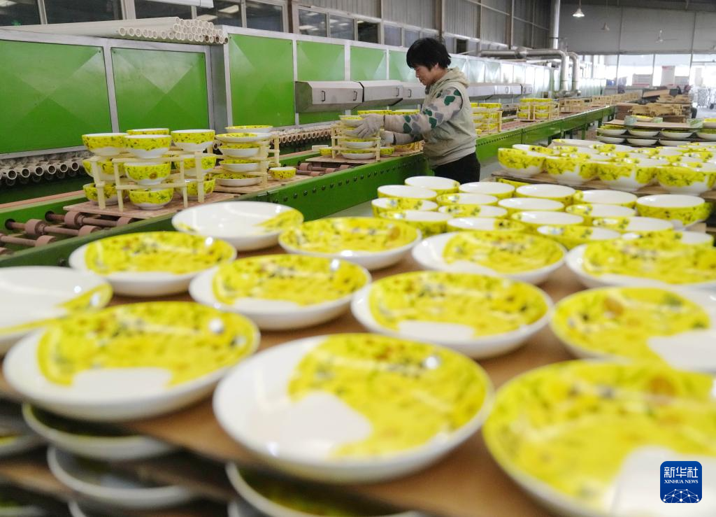 12月15日,工人在河北省唐山市开平区一家日用陶瓷企业的车间工作。