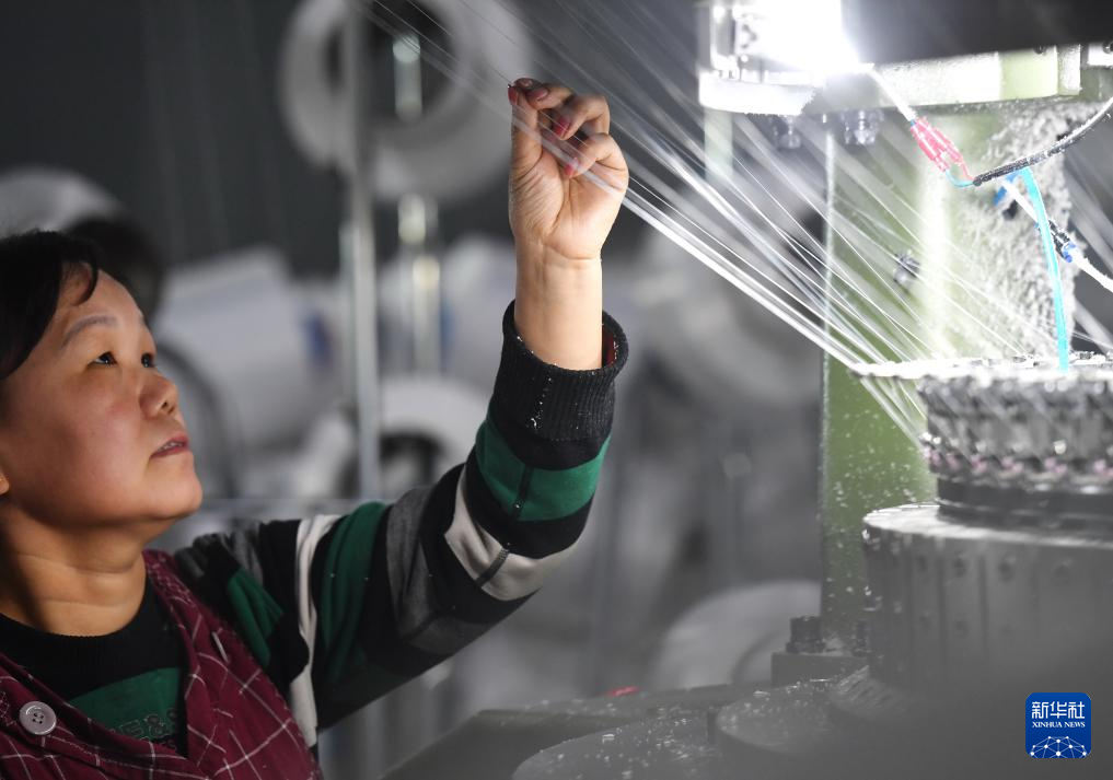 12月24日,工人在河北省晋州市东卓宿镇海滩村一家毛巾企业的纺织车间工作。