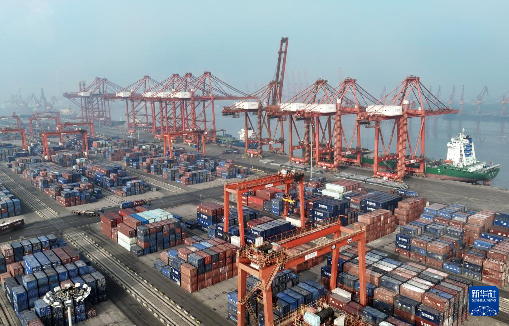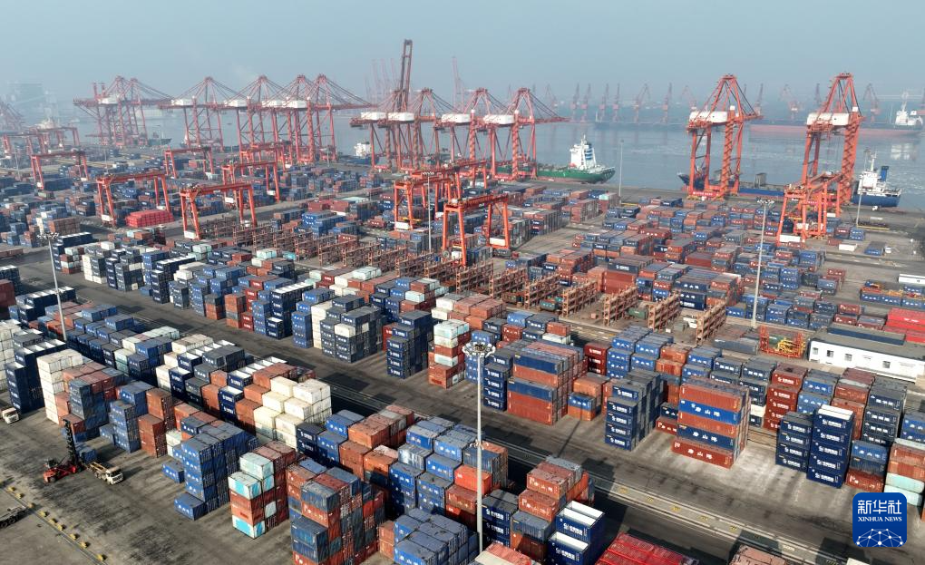 这是2月7日拍摄的唐山港京唐港区集装箱码头(无人机照片)。
