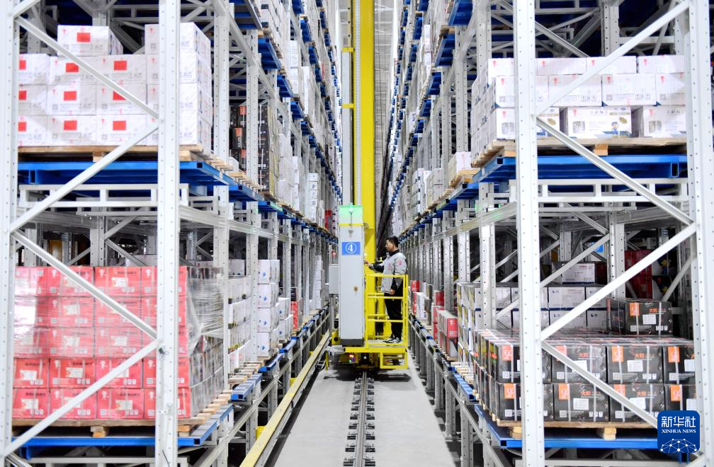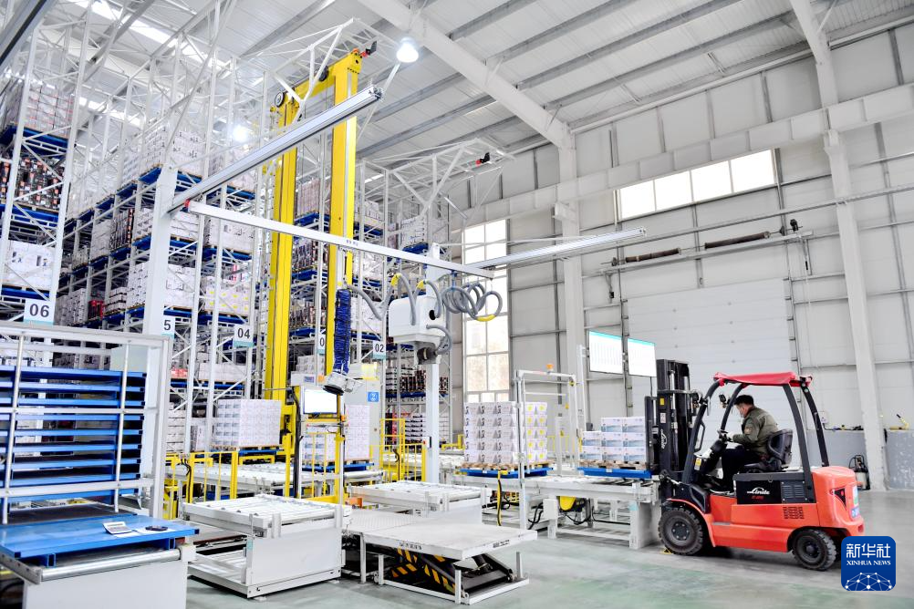 2月20日,在邯郸市永年区一家紧固件生产企业,工人在智能仓储车间装卸货物。