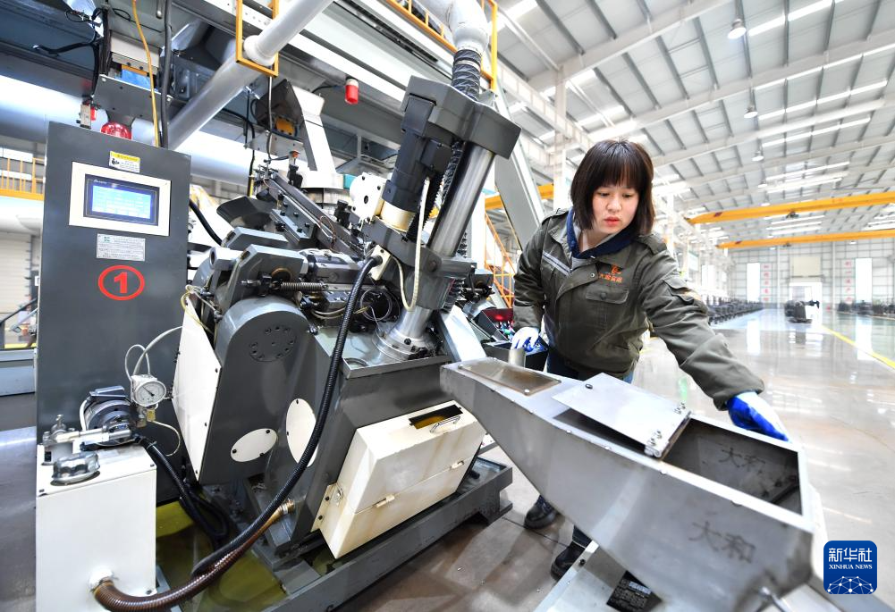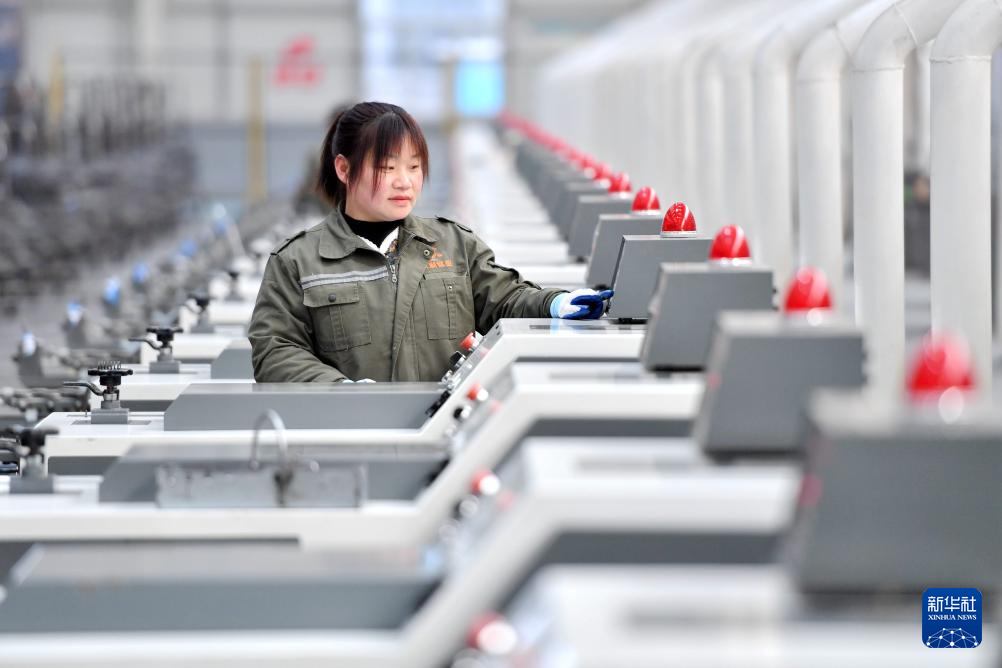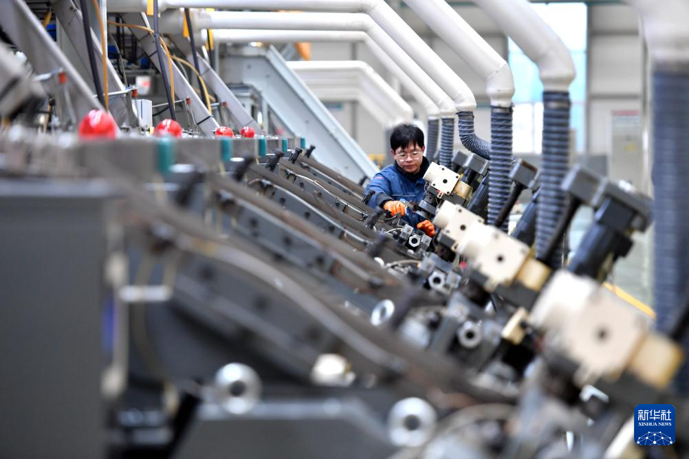 2月20日,在邯郸市永年区一家紧固件生产企业的数字化智能生产车间,工人在检查设备运行情况。