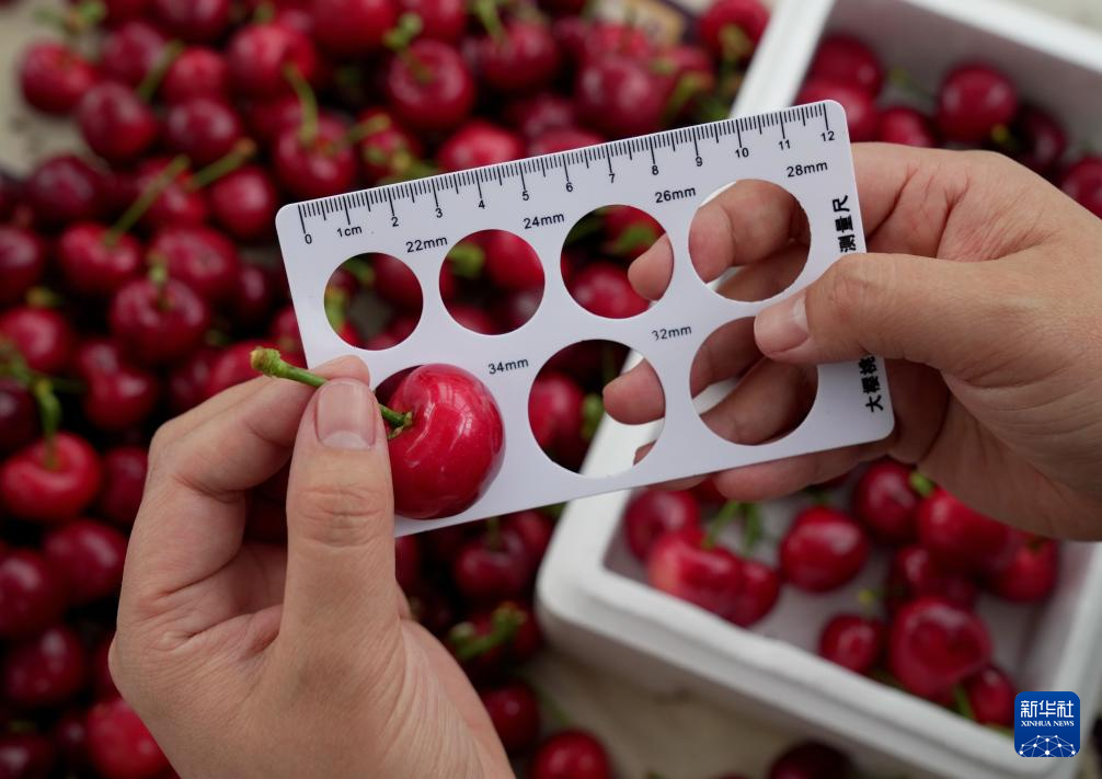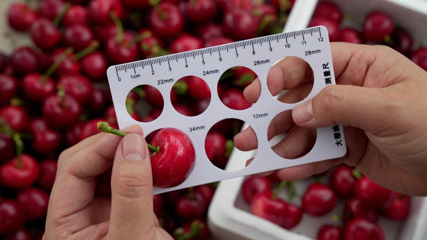 3月24日,河北省秦皇岛市山海关区石河镇一果农在分拣刚采摘的樱桃。