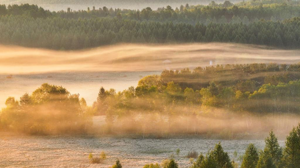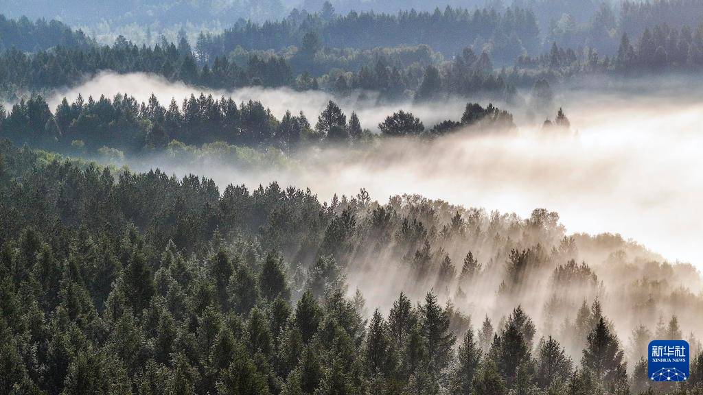 夏日清晨,位于河北省承德市围场满族蒙古族自治县境内的塞罕坝国家森林公园晨光映照,林海浩渺,景美如画。