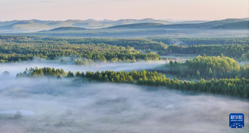 6月1日拍摄的河北塞罕坝国家森林公园晨景(无人机照片)。