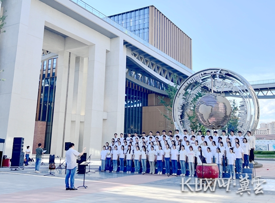 在廊坊临空国际现代商贸物流CBD中央广场,伴随着清脆的钢琴声,一阵阵时而深情时而高亢的歌声响彻蓝天,身着白色T恤的大学生们用饱满的热情和甜美的嗓音,深情演绎一首首经典歌曲,美妙的合唱抑扬顿挫、婉转动人,为夏日的临空经济区(廊坊)增添了一抹别样的魅力。