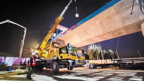 6月17日凌晨2时,经过两个小时的紧张施工,在不断交的情况下,中铁十一局雄商高铁站前六标项目枣清特大桥跨S324省道连续梁合龙顺利完成。
