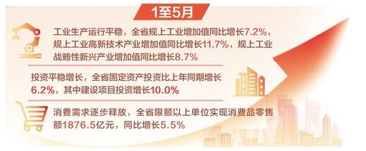 工业生产运行平稳,固定资产投资稳定增长,消费品市场规模扩大……6月20日,省统计局对外发布了1至5月全省经济运行情况。