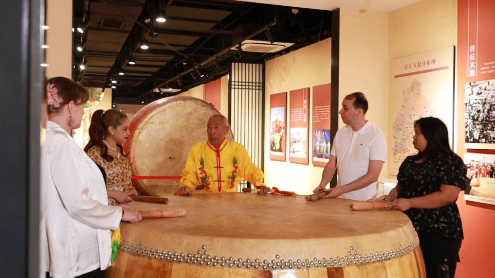 铿锵的节奏、雄浑的鼓声……连日来,河北省任丘市文化馆里鼓声阵阵,来自俄罗斯、摩洛哥等国家的非遗爱好者,在任丘大鼓传承人的指导下,欢快地敲打出节奏十足的鼓声。