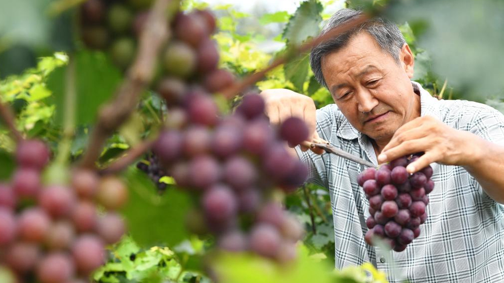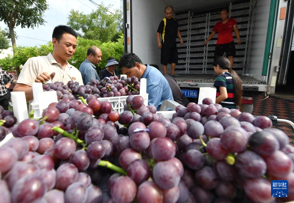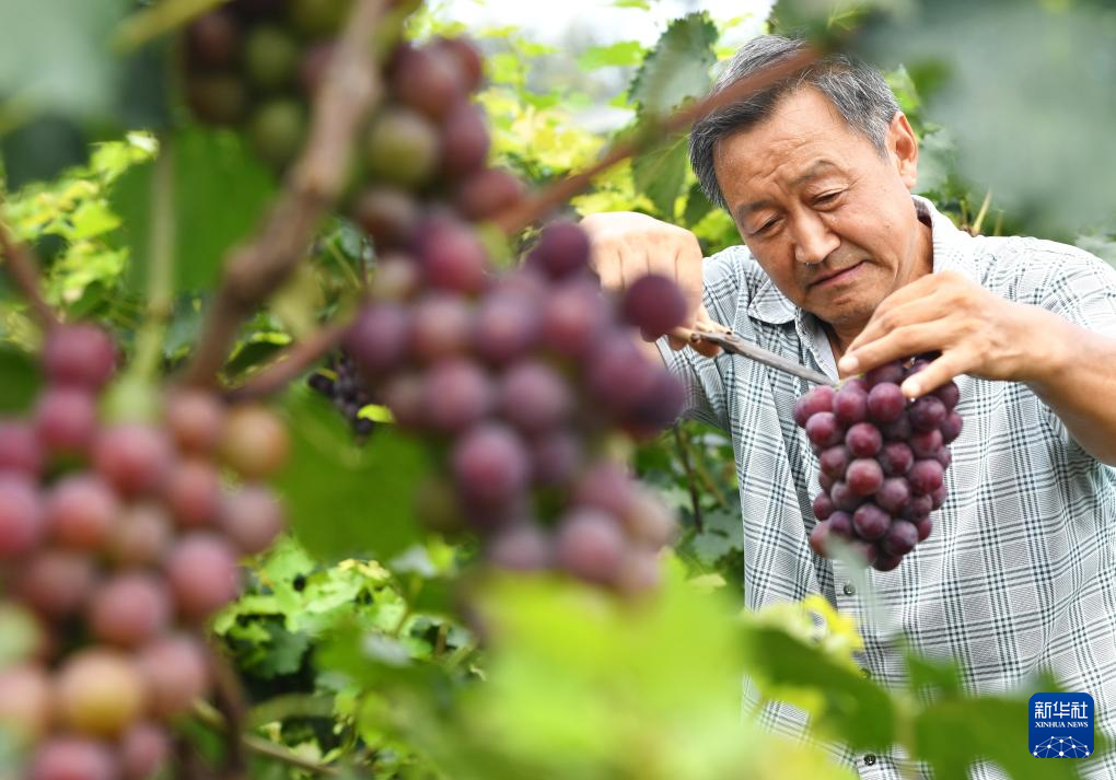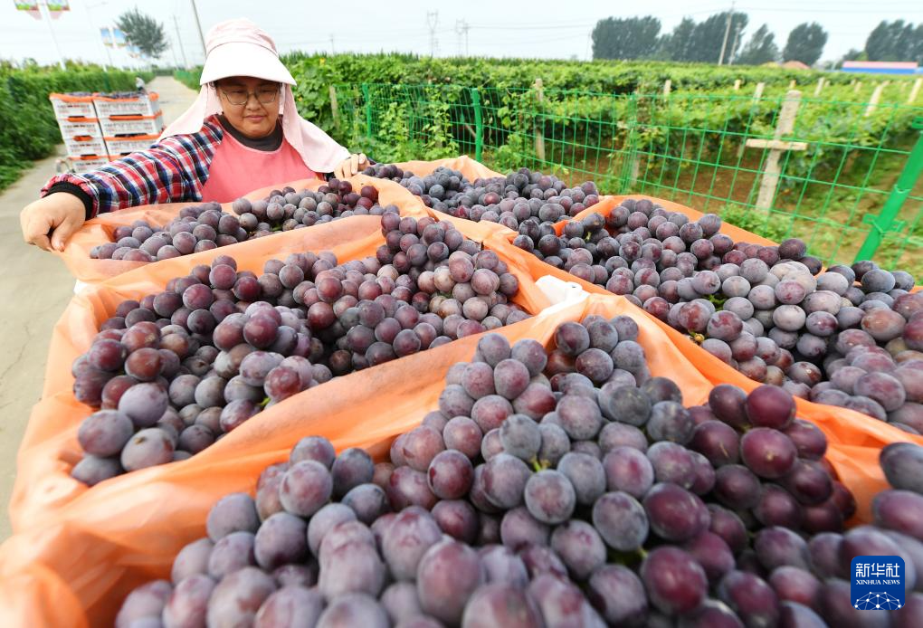 近日,河北省晋州市的4万多亩葡萄进入成熟期,果农们开始适时采摘,供应市场。近年来,晋州市规模化发展葡萄种植,促进农业增效、农民增收,助力乡村振兴。