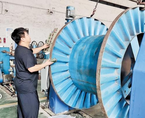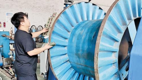 8月9日,运祥线缆有限公司员工正在熟练操作设备。记者 王营 摄