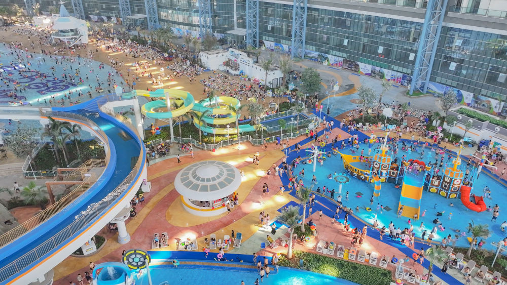 ↑这是9月25日拍摄的鲲乐湾国际旅游度假区水世界场馆(无人机照片)。(李延涛 摄)