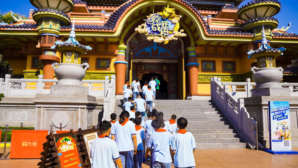 ↑这是9月25日拍摄的在方特国色春秋主题乐园内研学的学生。(韦科 摄)