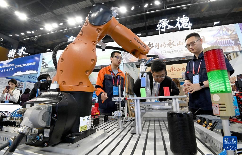 4月26日,参观者在技能成果展示和绝技绝活展演区参观。