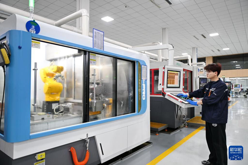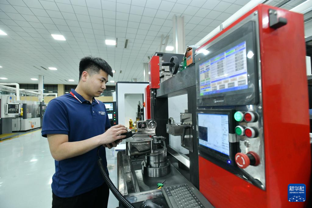 6月5日,河北省任丘市一家电力装备制造企业的工人在操作数控设备。