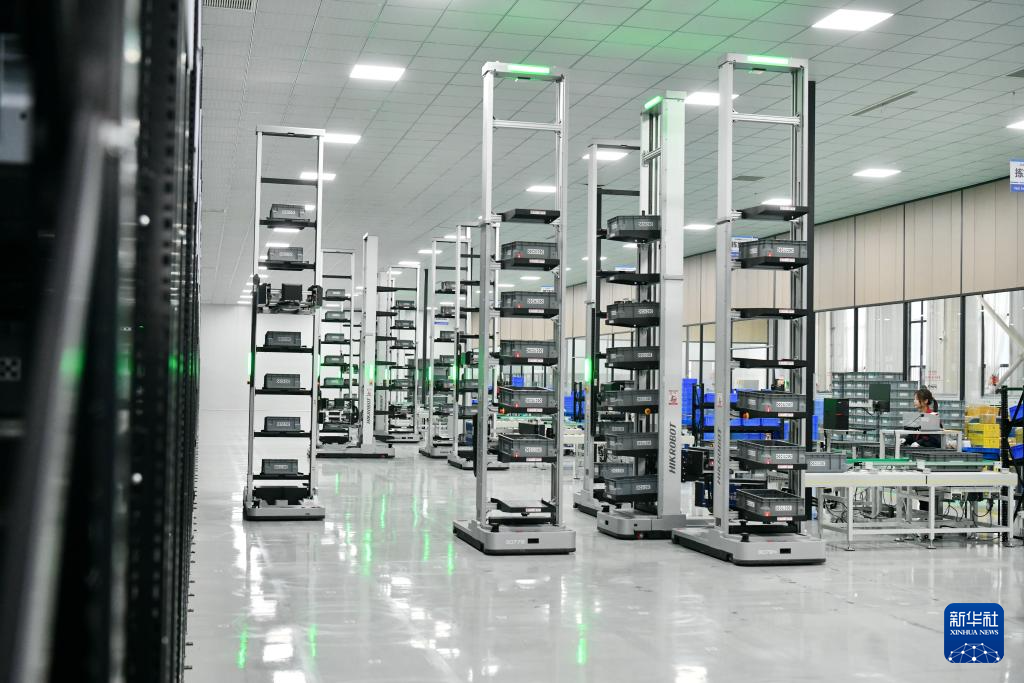 6月5日,河北省任丘市一家电力装备制造企业的工人在智能仓库内工作。