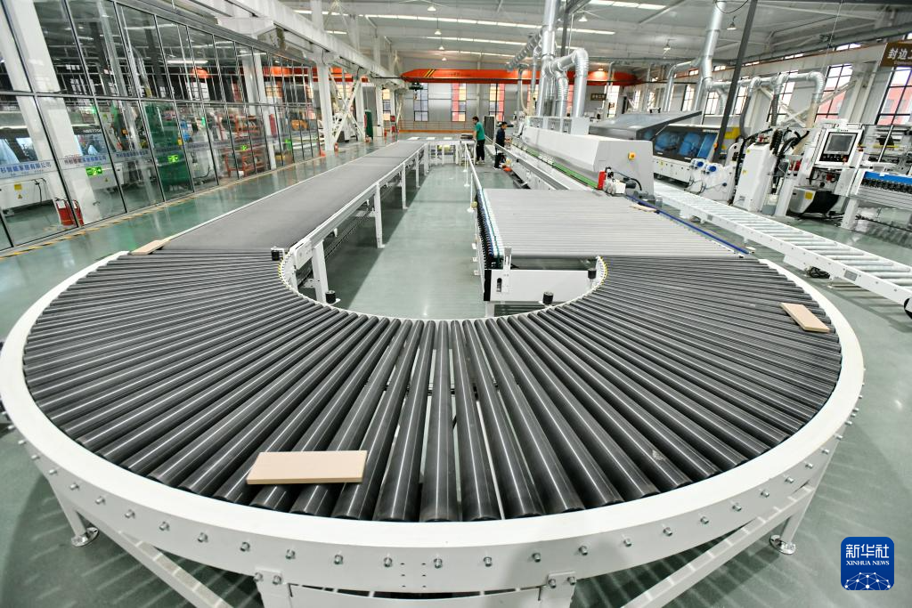 6月5日,河北省任丘市一家家具制造企业的员工在生产线上工作。