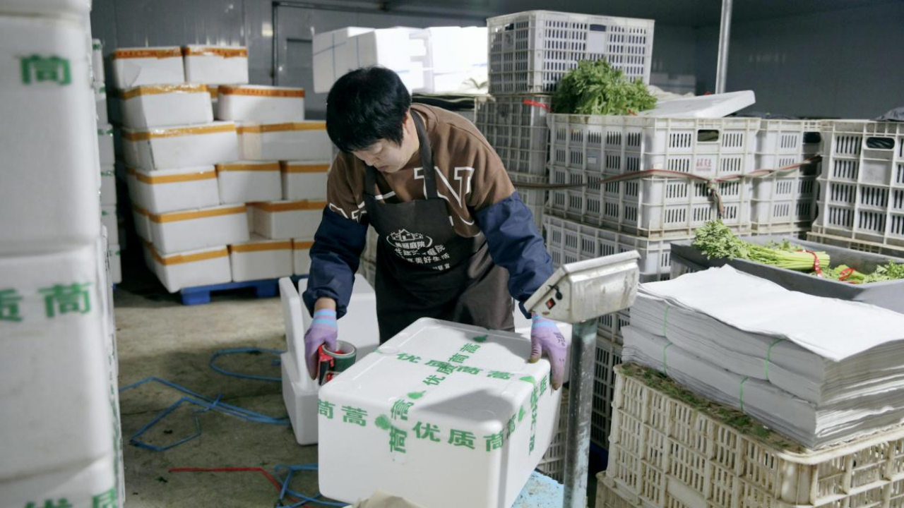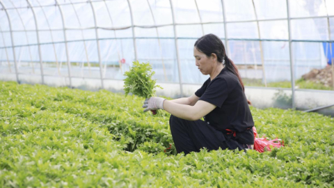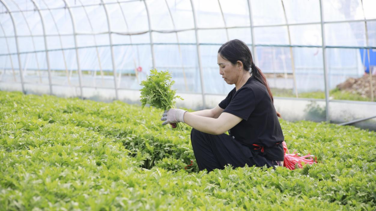 近日,河北省张家口市察北管理区沙沟中心村智慧农业产业园区的大棚茼蒿迎来丰收季,鲜嫩翠绿的茼蒿长势喜人,村民们忙着采摘、分拣、装箱、装车。