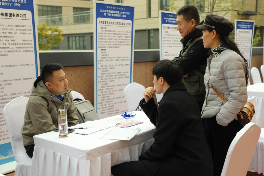 活动第一板块为京津冀留学回国人才专项招聘暨“海聚燕赵”第三届河北省留学人员交流活动,采取线下、线上相结合方式进行。重点邀约河北大学、河钢集团材料技术研究院等100余家重点用人单位,发布需求岗位370余个,人才需求总量超2200人。现场还为留学人员提供政策解答、职业指导、简历诊断等回国发展全链条咨询服务。据统计,此项招聘吸引760余名海外留学背景人才到场求职,达成引进意向622人次。