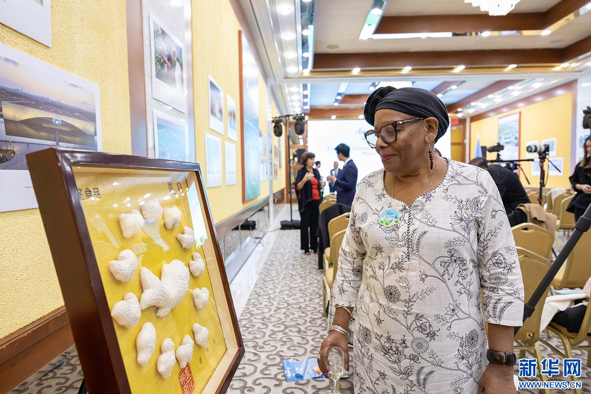 美国纽约联合国广场千禧希尔顿酒店外交官宴会厅展出的沧州旱碱麦面花。新华网 发