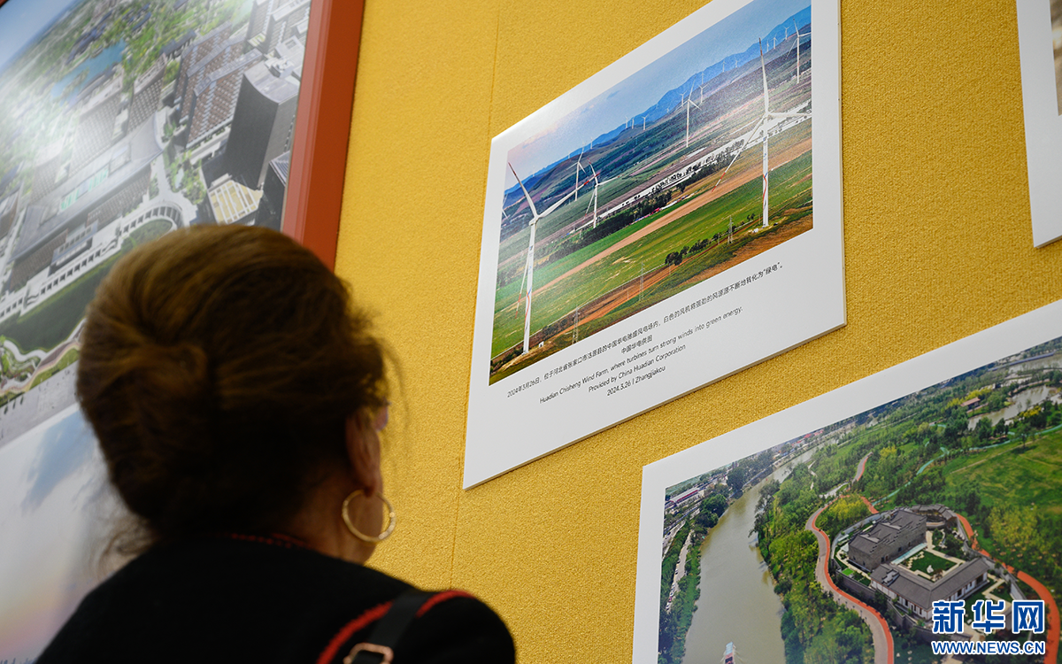 观众在观看中国华电驰盛风电场图片。新华网 发