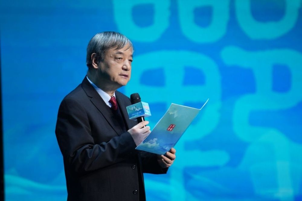图为欧洲科学院外籍院士、清华大学人工智能研究院常务副院长,教授、博导孙茂松发布“2025年度成语”之“砥柱中流”